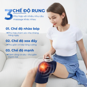 Rung mát xa 3 cấp độ: Kích thích các mô cơ xung quanh gối, hỗ trợ phục hồi sau vận động hoặc ngồi lâu.