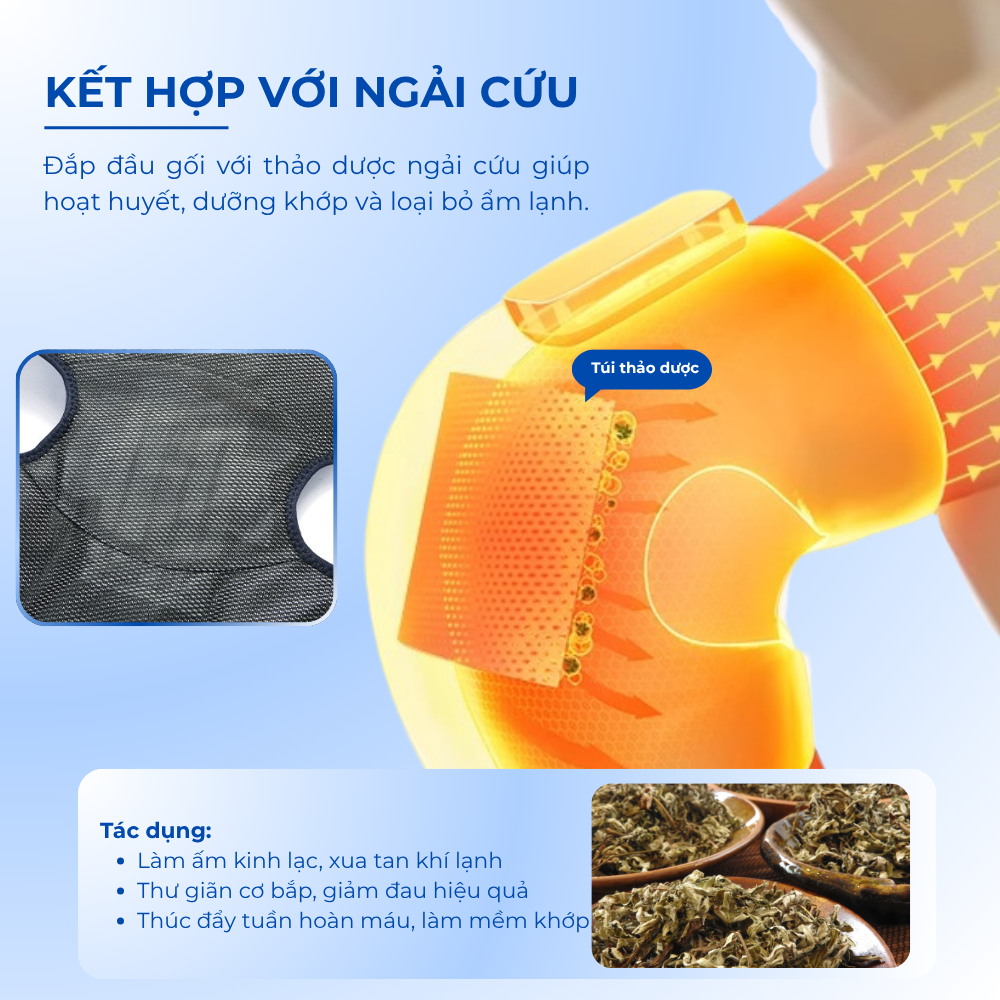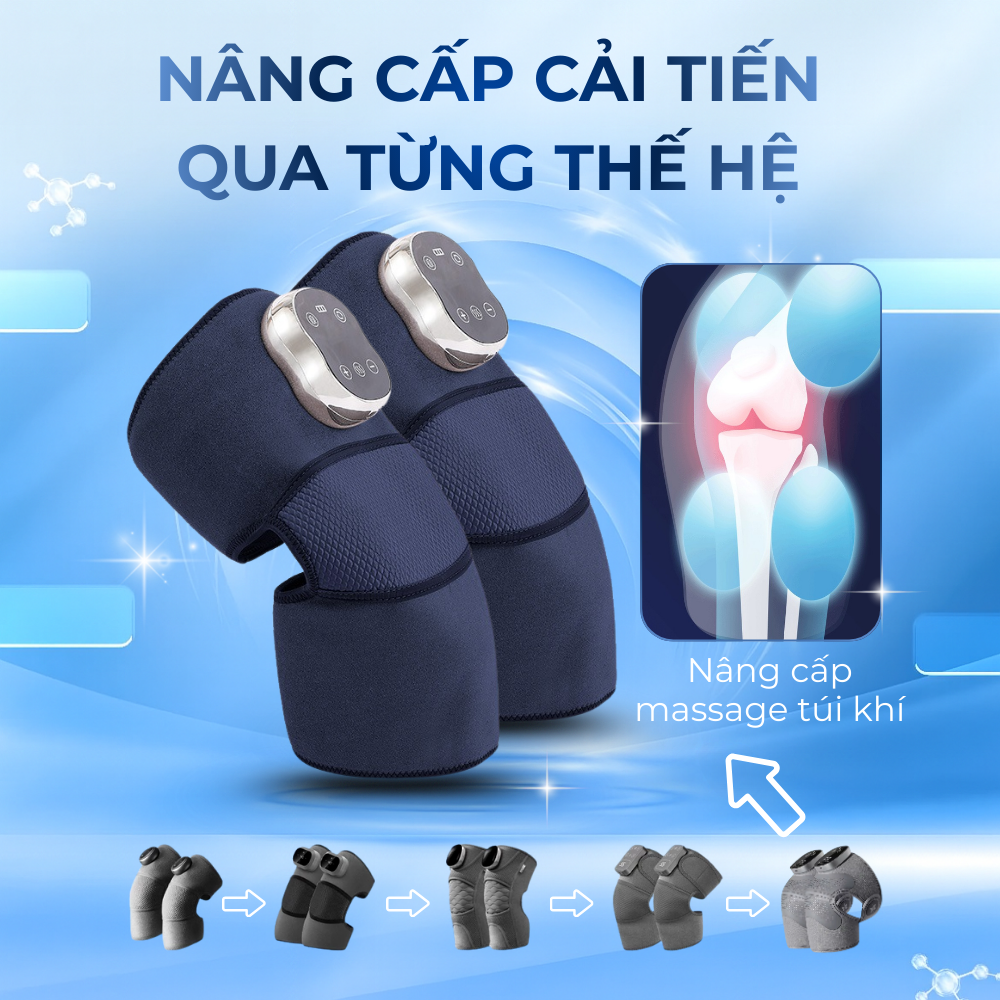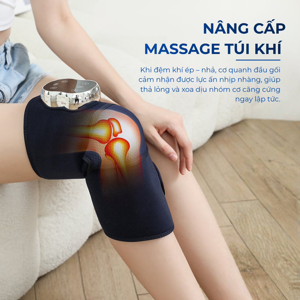 Túi khí co bóp linh hoạt: Ôm sát vùng khớp gối, mô phỏng động tác xoa bóp nhẹ nhàng, giúp giảm đau, giảm tê, hỗ trợ thoái hóa.