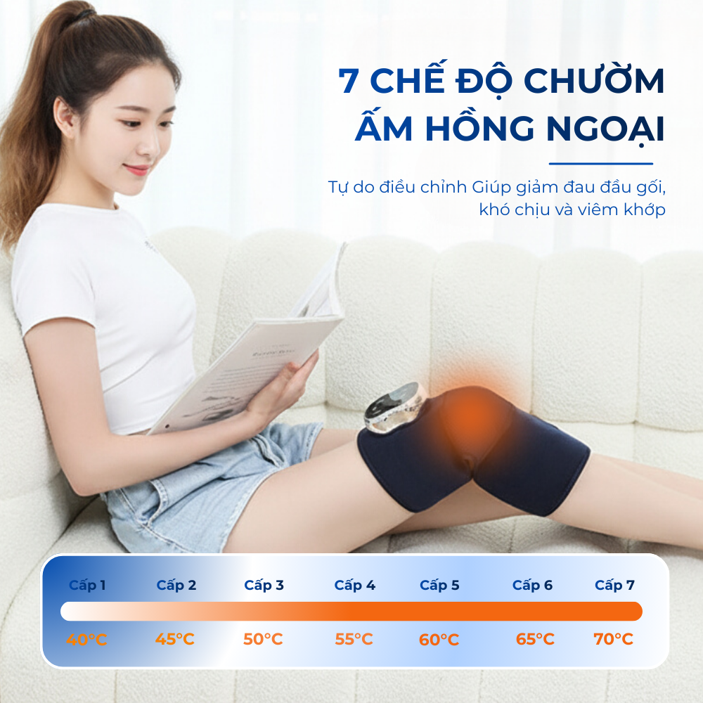Chườm ấm hồng ngoại: 7 mức nhiệt từ 40–70°C tác động sâu, tăng tuần hoàn máu, làm dịu các cơn đau nhức khớp.